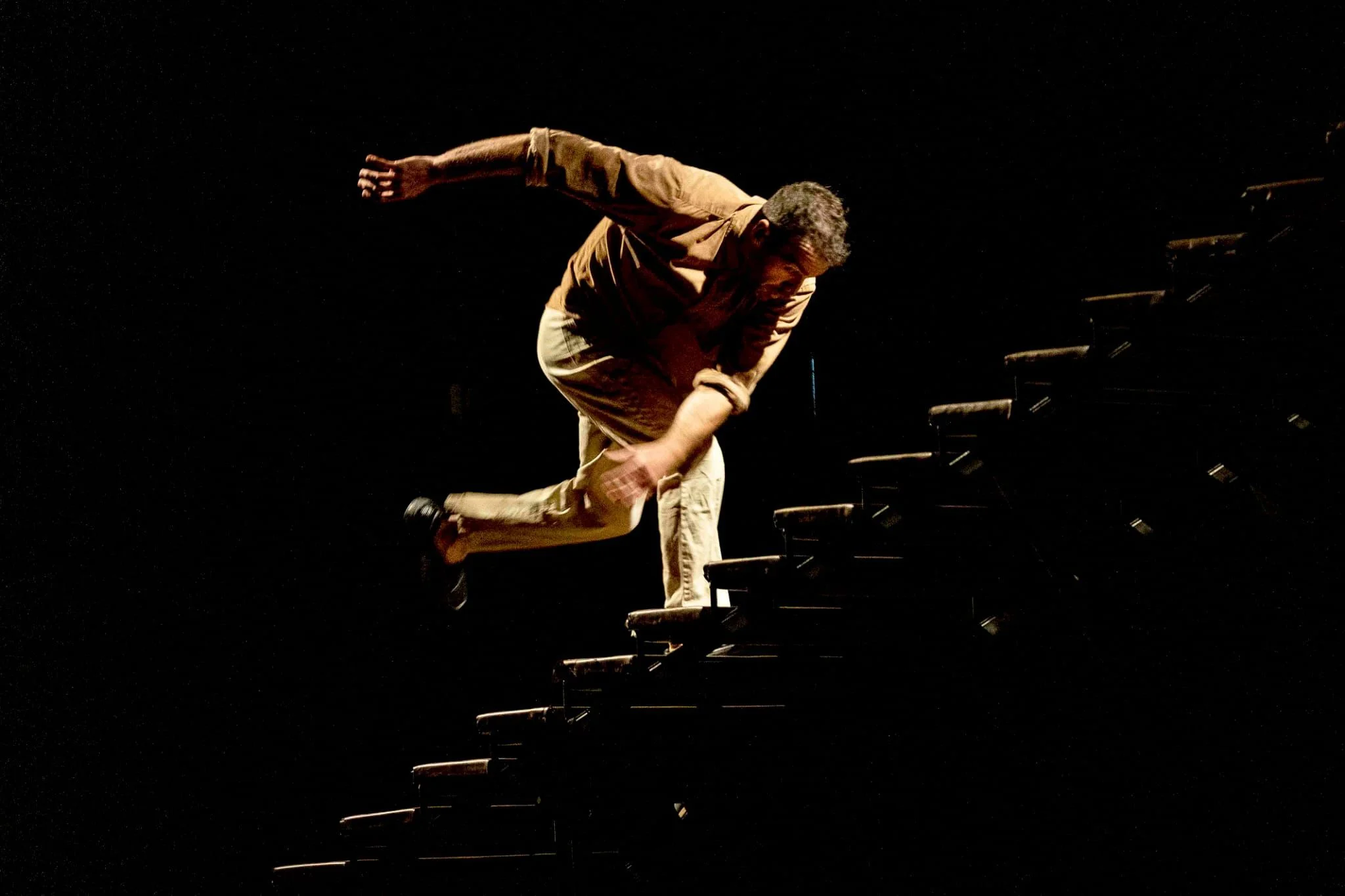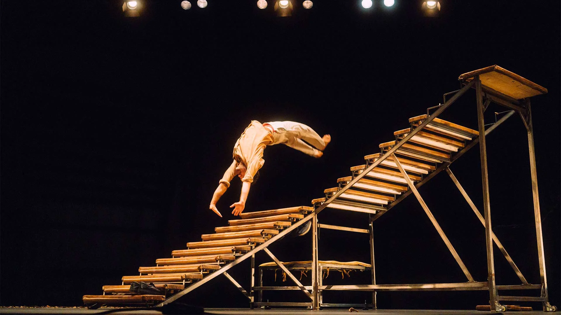 Ákri és un espai de pas, però també pot simbolitzar un estil de vida. Us pensàveu que no es podia convertir una escala en la protagonista d'un espectacle? L'acròbata Manel Rosés la fa servir per parlar-vos de llindars i transformacions.